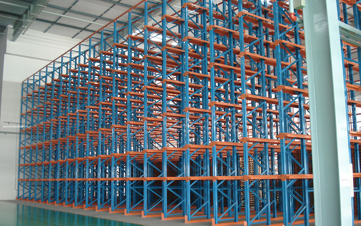 駛?cè)胧截浖苡址Q貫通式貨架。適用于品種少,批量大的貨物儲(chǔ)存。因?yàn)槿∠挥诟髋咆浖苤g的巷道,將貨架合并在一起,使同一層、同一列的貨物互相接著,最大限度地提高了庫容利用率,所以駛?cè)胧截浖茉谕瑯拥目臻g內(nèi)比通常的托盤貨架幾乎多一倍的儲(chǔ)存能力。此貨架存取方式為先進(jìn)后出或先進(jìn)先出;從同一側(cè)進(jìn)出貨物,通常常面取貨建議不超過5個(gè)貨位深度。